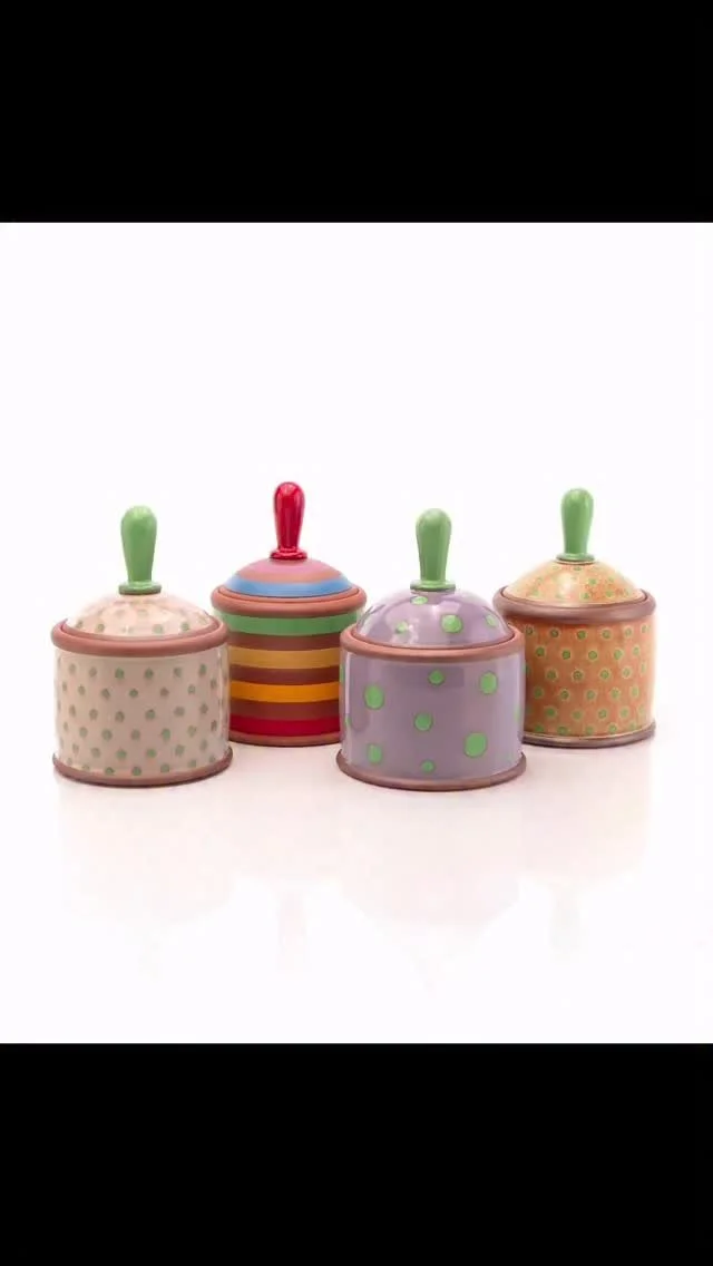 Assorted pink polka pots