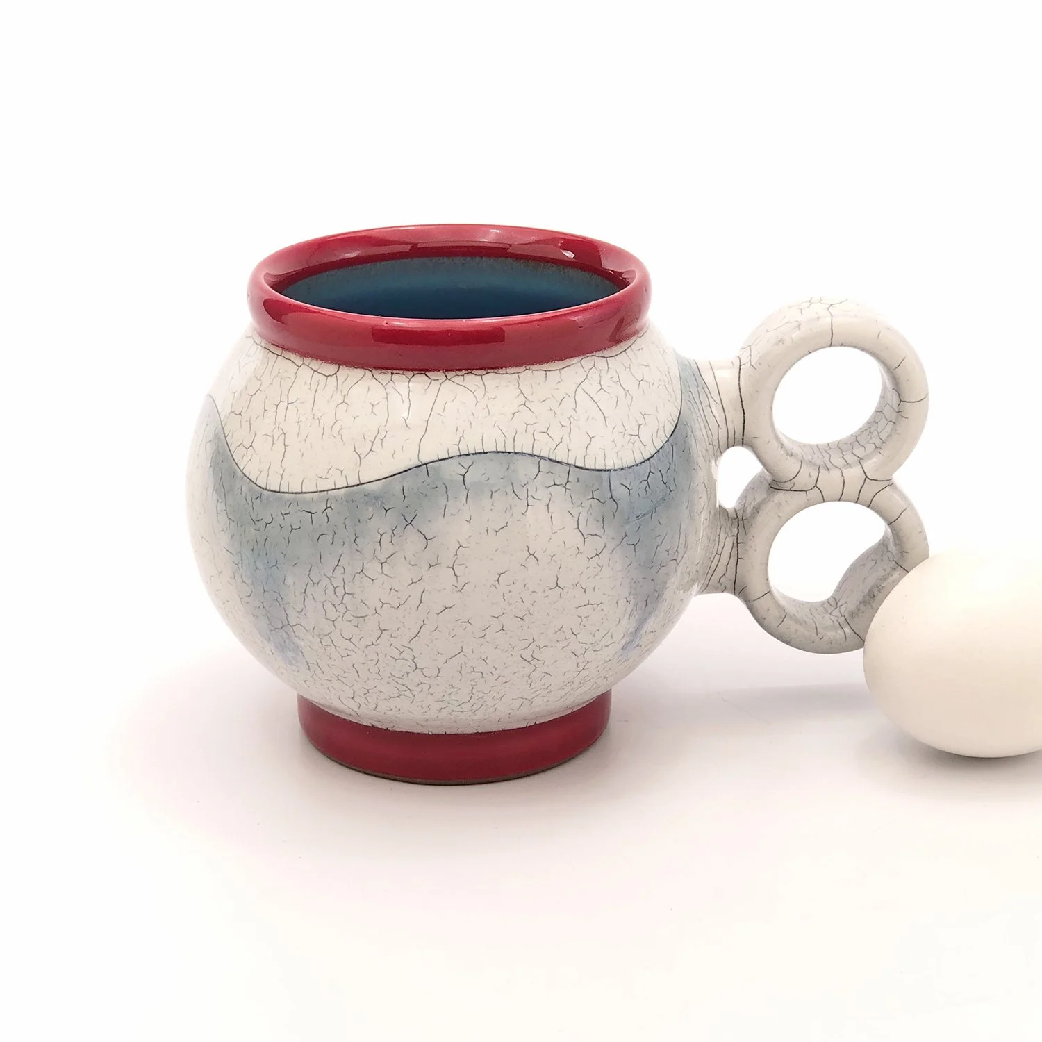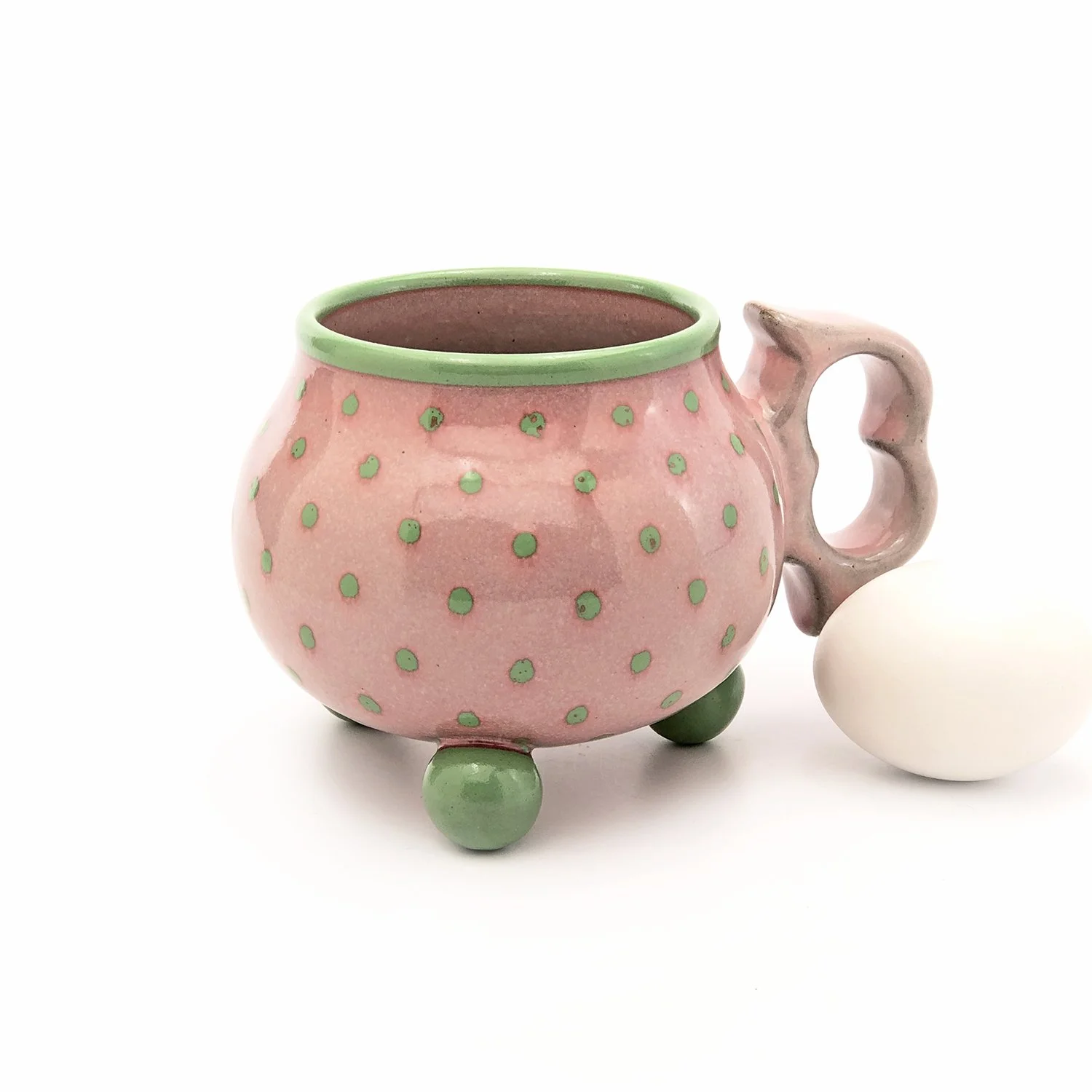 Ounces Matter! Check the OZ. capacity of mugs AND bowls. They look very similar in size here in the Ol’ Webshop. The standard size egg within item photos provides scale.